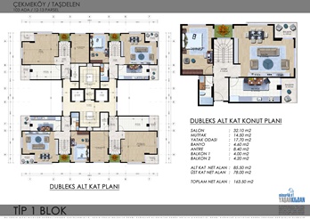 8 Blok, Toplam 432 daire ve 1000 m² Ticari Alan yer alacaktır.