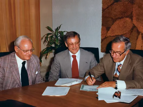 With a belief that employee ownership would result in greater loyalty and stability, and an admiration for other companies using the model, CEO Bob Stollery and 24 other senior managers purchase Poole Construction Ltd. from the Poole family, signaling the start of employee ownership.